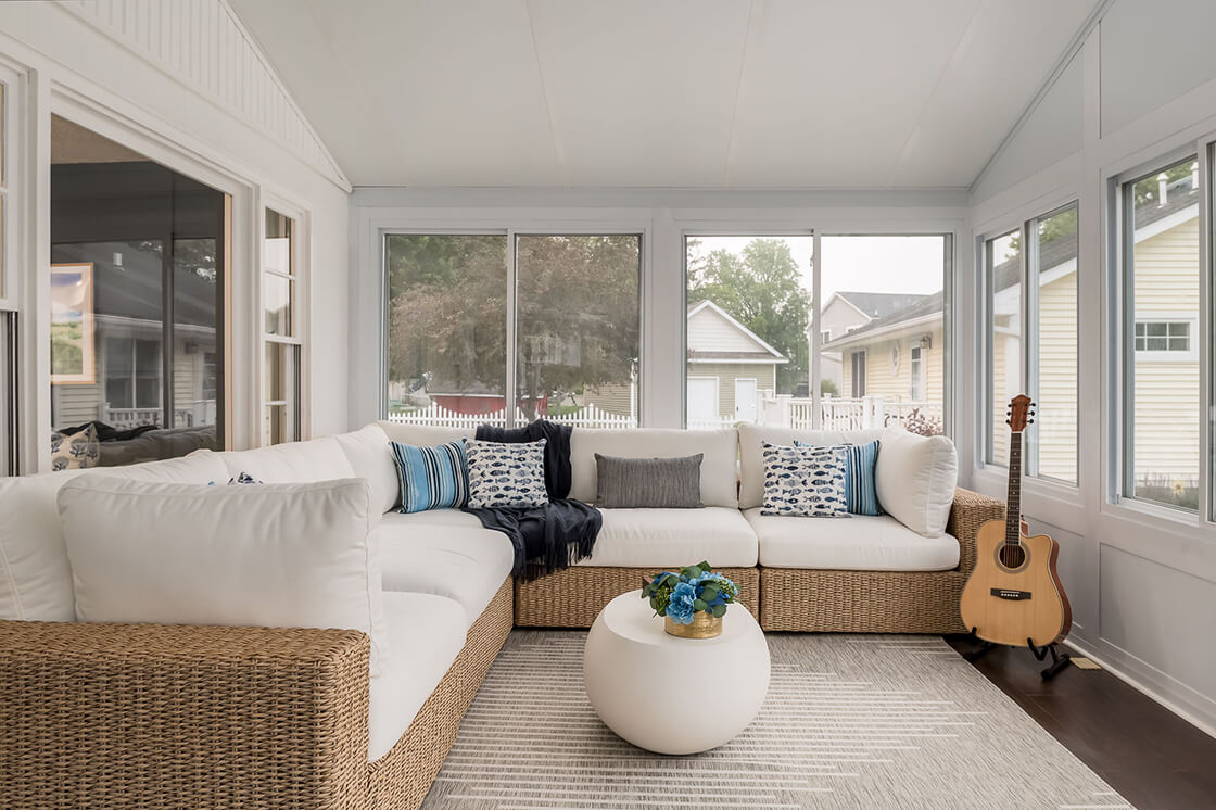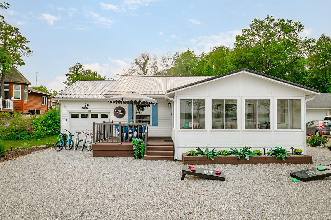 ▸ Sunroom with full-length windows where you can take in Bass Lake’s vibrant morning hues and stunning evening glows